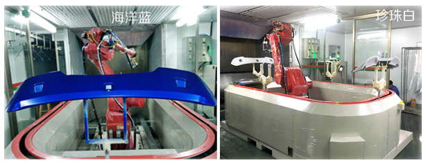 汽車尾翼機器人噴漆珍珠白、海洋藍